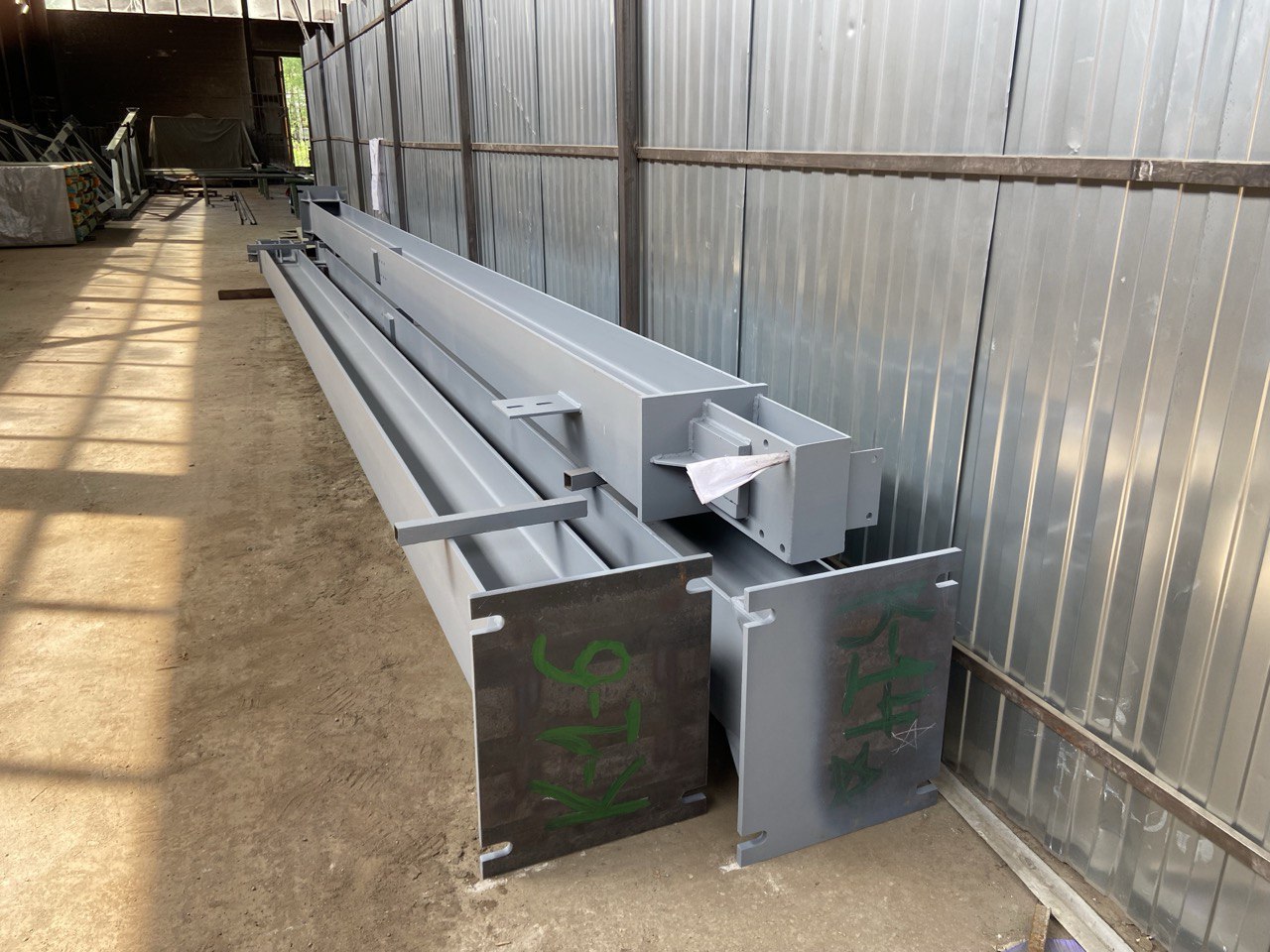 - Подготовка металлопроката — резка двутавров, труб и листового металла в размер, правка и маркировка заготовок.